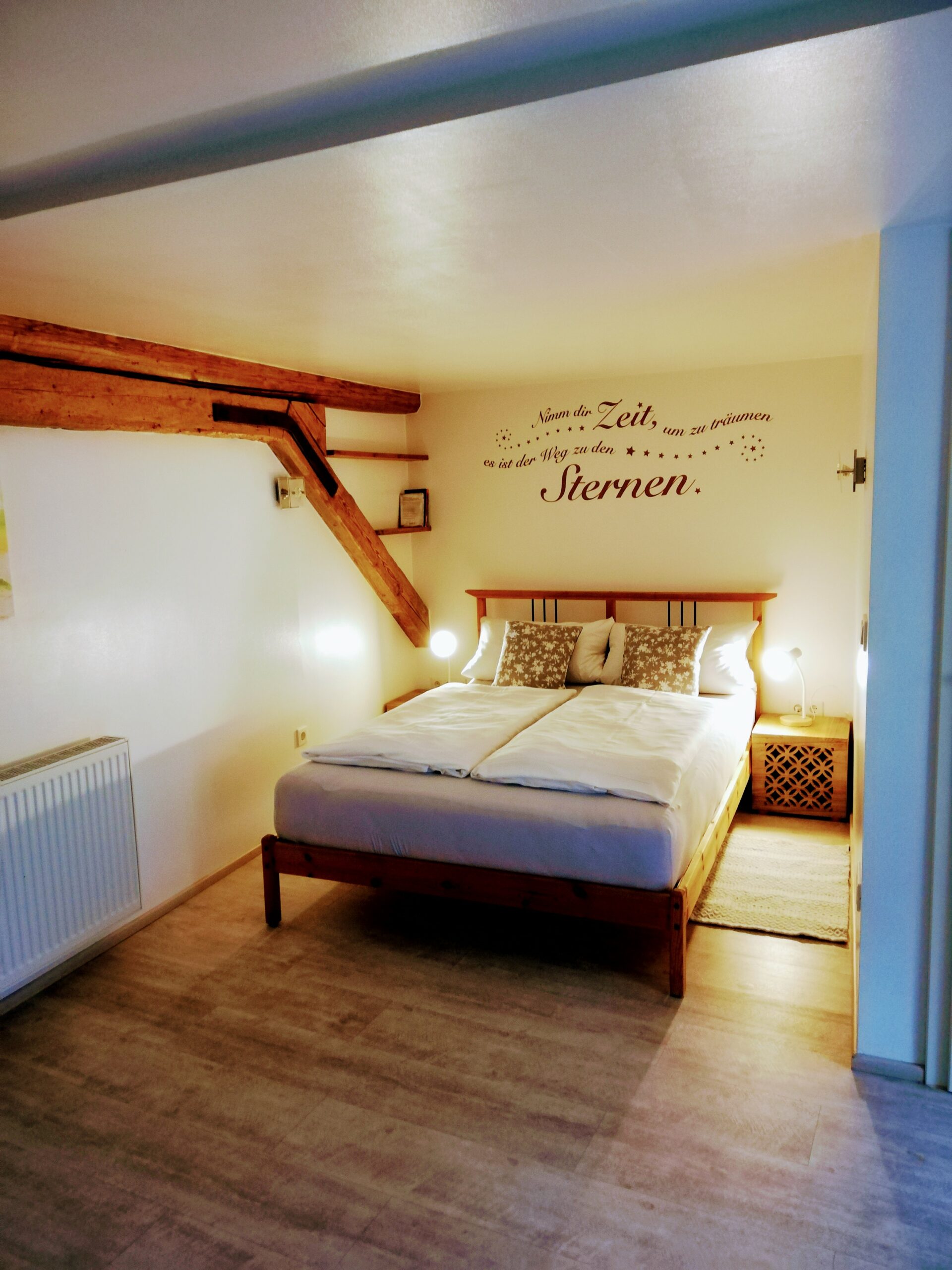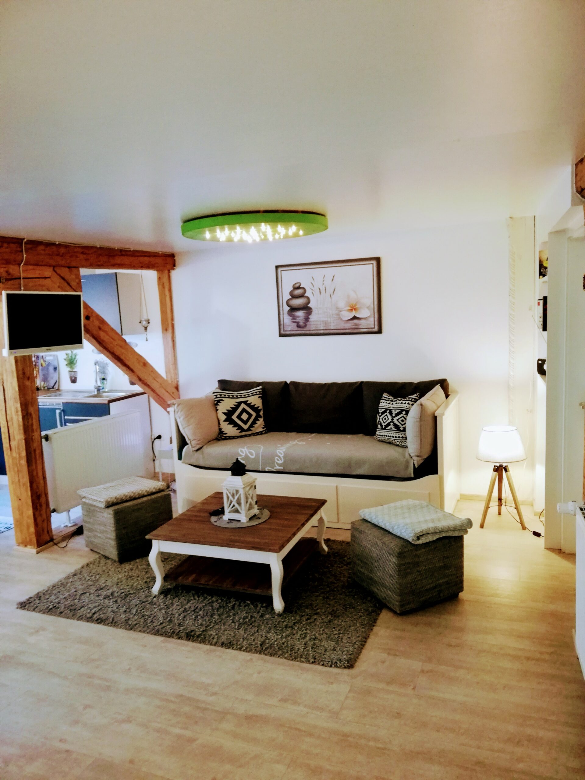 Unser Appartment 1 ist eine wunderschöne Ferienwohnung mit Fachwerkambiente und bietet Platz für max. 4 Personen,hat ein Tageslichtbad mit Dusche und eine kleine Einbauküche.